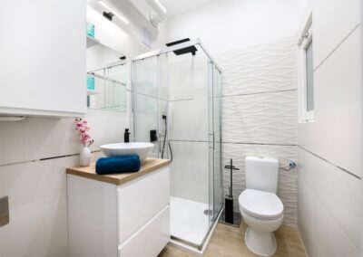 Vezetékezés, burkolás, falak glettelése-, festése, tapétázás, aljzatkiegyenlítés, szaniterek beszerelése, berendezés-styling, és ezen felül még sok más apró feladat is, ami az ingatlan értékét növelte.